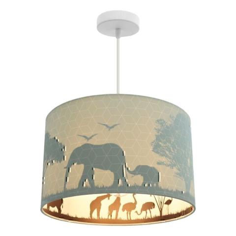 Cette suspension pour enfants verte en tissu, Safari, a les caractéristiques suivantes :• 30 cm lang et 18 cm de haut• 1 x E27 culot (ampoule exclue)• Vert