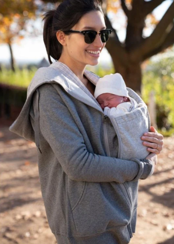 Une fois bébé né, il suffit d'ajouter la partie couvre-bébé amovible en le zippant au sweat. Elle couvrira le porte-bébé facilement afin de maintenir bébé au chaud.
