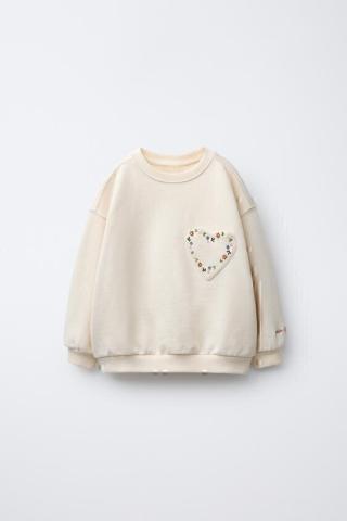 Taille 98 - Sweat à col rond et manches longues. Finitions côtelées. Poche plaquée en forme de cœur avec détail brodé. Détail inscription brodée sur la manche et décor étiquette sur la manche. Tissu avec 78 % de coton.