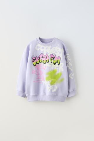 Sweat - Violet avec écritures - Zara - 9-10 ans (140 cm)
