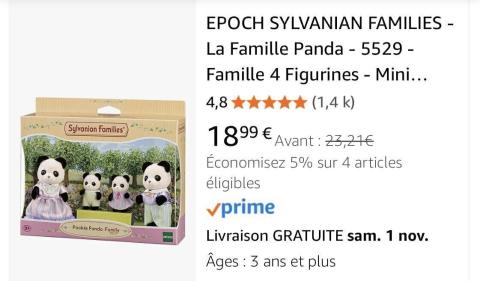 Ce produit est extrait d'une liste de cadeaux (Anniversaire, Noël, ...) déposée sur Kadolog. Kadolog permet de créer des listes de cadeaux (Anniversaire, Noël, ...) en toute liberté. Il est possible d'ajouter toutes vos envies cadeaux et de recevoir les dons directement sur votre compte. Avec les dons reçus, vous êtes alors libre d'aller acheter vos produits (comme ce 'Sylvanian famille panda ') où et quand vous le souhaitez.