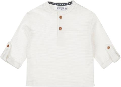 T-shirt blanc à rayures horizontales en relief et boutons marrons, de la marque Dirkje. Taille 56 cm.