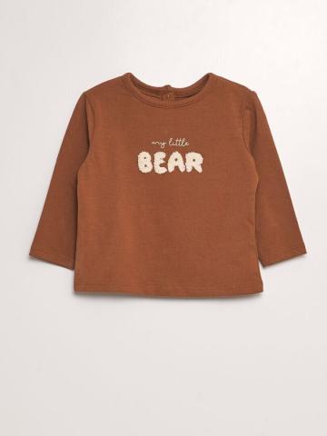 Un t-shirt imprimé qui met en avant notre ami l'ours ! - T-shirt manches longues - En jersey - Col rond - Ouverture pressionnée au dos