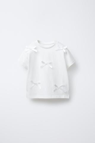 T-shirt à col rond et manches courtes. Appliqué de petits nœuds sur le devant.