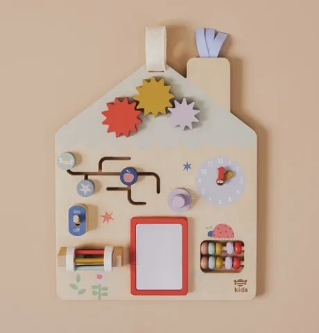 Divertissez les esprits curieux et occupez vos petites mains pendant des heures grâce à ce tableau d'activités en bois. Ce jouet en bois contient des tonnes d'éléments interactifs qui feront tourner les choses ! Conçu en forme de maison, ce jouet génial comprend une porte en miroir, des rouages à tourner, des perles à faire glisser et des boutons sur lesquels appuyer, ce qui en fait une destination essentielle pour le développement cognitif, moteur, de coordination et sensoriel des jeunes élèves. De plus, ce superbe jouet est peint dans un arc-en-ciel de tons pastel et constitue également une magnifique décoration pour une pépinière d'abeilles très fréquentée.