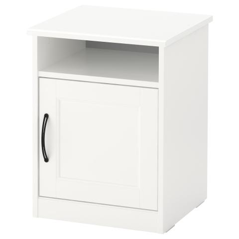 SONGESAND Table de chevet, blanc, 42x40 cm. Porte réversible. Un passe-câbles permet de diriger les câbles vers l'arrière de façon à ce qu'ils ne soient pas visibles.