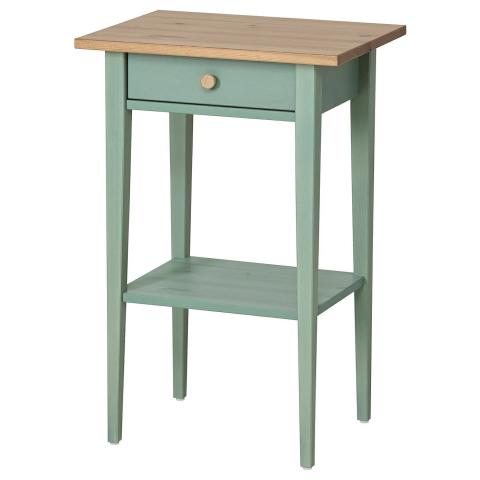 HEMNES table de chevet, gris vert/teinté brun clair, 46x35 cm La couleur gris-vert de cette table haute apporte une touche naturelle à votre pièce, tandis que ses détails en bois teinté font ressortir la beauté naturelle de ce matériau. Parfaitement coordonnée à d'autres meubles de la série HEMNES.
