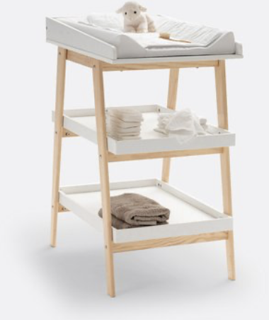 La table à langer Oréade. Pratique et fonctionnelle grâce à son plan à langer et ses 2 étagères. Elle est idéale pour ranger tout le nécessaire de bébé et le garder à portée de main.
