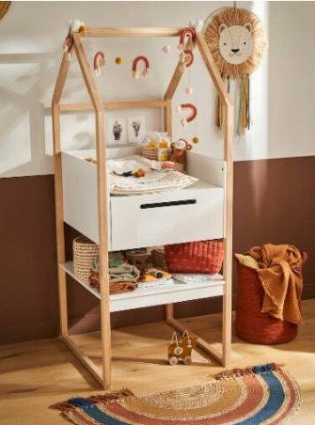 La tendance tipi s'invite jusque sur la table à langer ! Sur cette superbe table, vous pourrez changer votre petit bout de chou avec style et en toute simplicité grâce à un tiroir et une tablette.