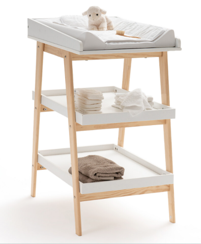 La table à langer Oréade. Pratique et fonctionnelle grâce à son plan à langer et ses 2 étagères. Elle est idéale pour ranger tout le nécessaire de bébé et le garder à portée de main.