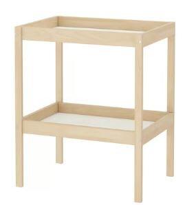 Table à langer Ikea avec divers accessoires.