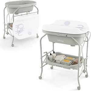 Table à langer avec baignoire, commode pliable avec roulettes de support de bain amovibles, support de rangement étanche, support de rangement portable pour nouveau-né