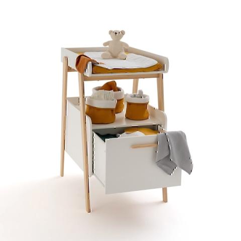 Sobre, compacte et fonctionnelle. La table à langer Oreade, en bois certifié FSC®, accueille bébé en toute sécurité pour sa toilette. Son grand tiroir et son plateau permettent d’avoir tout le nécessaire à porter de main : couches, langes, bodies...