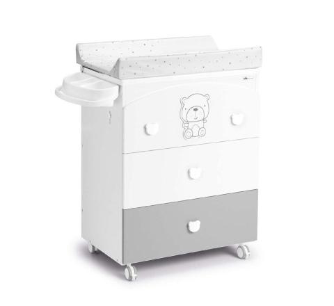 INFORMATIONS D'UTILISATION dès la naissance DESCRIPTION Commode au design moderne et raffiné 3 tiroirs avec glissières métalliques Matelas à langer souple avec système anti-bascule Baignoire spacieuse avec deux assises anatomiques (un incliné pour les bébés de 0 à 6 mois et un pour les bébés de 6 à 12 mois) Compartiments de rangement et porte-éponge Bouchon et tube pour l'évacuation de l'eau