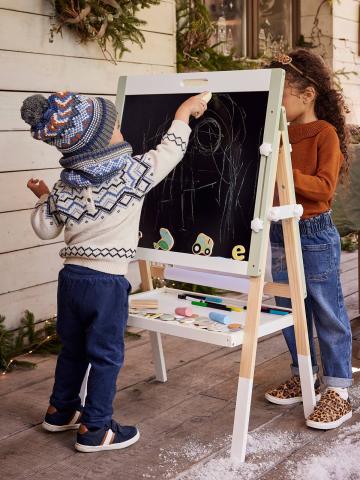 Un joli tableau qui plaira à toutes les graines d'artistes ! 4 en 1, il permet d'exprimer une multitude de talents : une partie tableau noir pour écrire à la craie