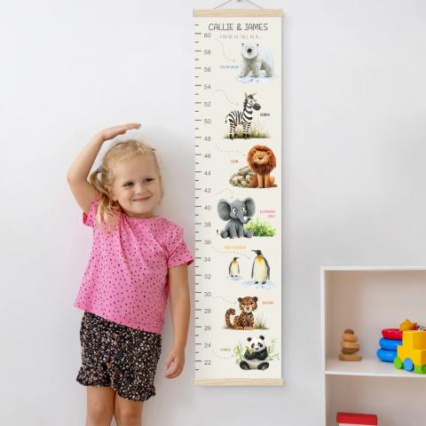 [DESIGN UNIQUE]La courbe de croissance présente d'adorables dessins d'animaux de la jungle dans des couleurs vives, ce qui en fait la préférée des enfants âgés de 2 à 10 ans et égaie instantanément la chambre de n'importe quel enfant. Elle peut également être personnalisée au nom de l'enfant, transformant ainsi une fiche de croissance ordinaire en un souvenir personnalisé de son développement. [HAUTE QUALITÉ]Fabriqué à partir de matériaux de première qualité et doté d'une surface lisse et sans bavures, il évite les irritations cutanées lors de son utilisation, ce qui permet aux parents de laisser les enfants prendre leurs mesures en toute confiance. Sa construction résiliente résiste à la déformation, garantissant l'absence de courbure ou de décoloration, même en cas d'installation murale de longue durée dans un environnement humide. Les marques de mesure sont imprimées en haute définition pour une clarté durable. [UTILISATION POLYVALENTE]Il peut être fixé de façon permanente sur le mur d'une chambre d'enfant pour servir à la fois de décoration et d'outil de mesure, permettant aux enfants de suivre visuellement l'évolution de leur taille au quotidien. Vous pouvez également le placer à un endroit bien visible dans le salon pour prendre rapidement des mesures pendant les réunions de famille, ce qui en fait une activité amusante de