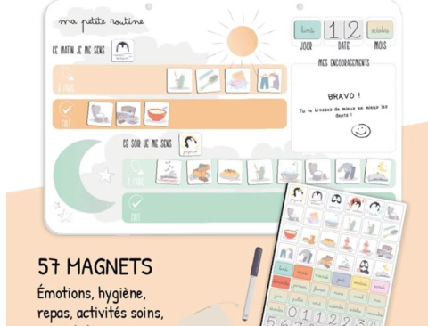 Ce produit est extrait d'une liste de cadeaux (Anniversaire, Noël, ...) déposée sur Kadolog. Kadolog permet de créer des listes de cadeaux (Anniversaire, Noël, ...) en toute liberté. Il est possible d'ajouter toutes vos envies cadeaux et de recevoir les dons directement sur votre compte. Avec les dons reçus, vous êtes alors libre d'aller acheter vos produits (comme ce 'Tableau Ma petite routine ') où et quand vous le souhaitez.
