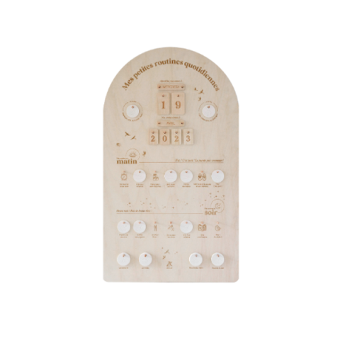 Un outil pédagogique au design raffiné et poétique pour aider les enfants (et les parents !) dans l'apprentissage des petites routines du quotidien. Les pastilles en simili cuir permettent à l'enfant de valider chaque routine effectuée .Chaque tableau est unique et peut présenter des nuances, nœuds, aspérités liées à l'essence naturelle du bois.