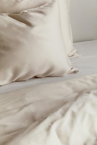 Taie d'oreiller en satin très doux et soyeux à la finition brillante – une matière respirante et thermorégulatrice pour un sommeil encore plus agréable. Modèle à rabat portefeuille.