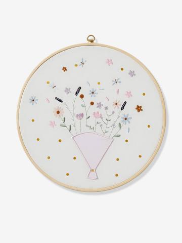 Comme un joli petit tableau, ce tambour brodé Douce Provence décore le mur avec tendresse. Un bouquet de fleurs et de petites libellules pour une ambiance bucolique. Détails imp