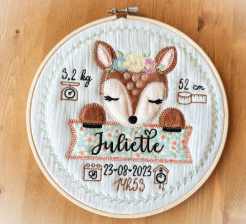 en toute liberté. Il est possible d'ajouter toutes vos envies cadeaux et de recevoir les dons directement sur votre compte. Avec les dons reçus, vous êtes alors libre d'aller acheter vos produits (comme ce 'Tambourin avec informations de naissance