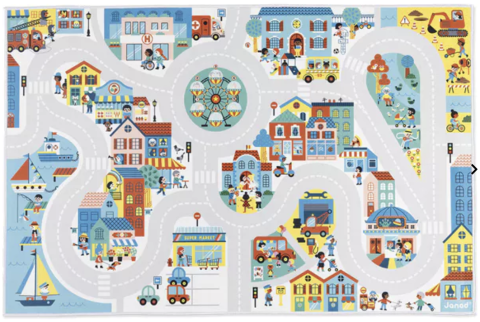 Ce tapis de jeu ville convient aux enfants à partir de 2 ans. Il possède une large et longue route, pour découvrir chaque quartier et imaginer des histoires à l’infini !