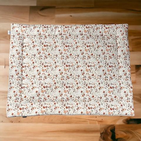 Maman étant une adepte de la motricité libre, ce tapis sera parfait pour les moments d'éveils au sol pour découvrir le monde qui m'entoure, les moments de TunnyTime, jouer avec mon arche et ma soeur. Réalisation fait main.