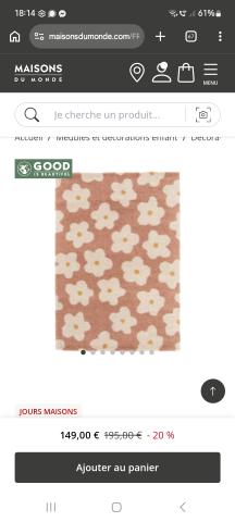 Ce produit est extrait d'une liste de naissance déposée sur Kadolog. Kadolog permet de créer des listes de naissance en toute liberté. Il est possible d'ajouter toutes vos envies cadeaux et de recevoir les dons directement sur votre compte. Avec les dons reçus, vous êtes alors libre d'aller acheter vos produits (comme ce 'Tapis chambre ') où et quand vous le souhaitez.