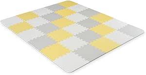 Kinderkraft LUNO kruipdeken voor baby's, speelmat voor baby's, kindertapijt, inclusief 30 puzzels, leerzaam, schuimpuzzel, babykamer, waterdicht, 150 x 180 cm, met tas, wit/geel : Amazon.com.be: Babyproducten