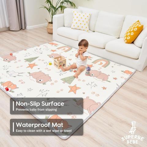 Tapis de Jeu pour Bebe 150x180x1cm, en Mousse Epais Pliable Reversible
