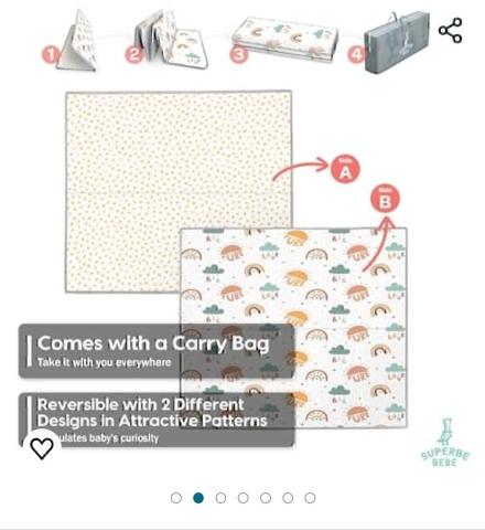 en toute liberté. Il est possible d'ajouter toutes vos envies cadeaux et de recevoir les dons directement sur votre compte. Avec les dons reçus, vous êtes alors libre d'aller acheter vos produits (comme ce 'Tapis de jeu et d'éveil