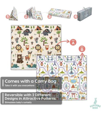 en toute liberté. Il est possible d'ajouter toutes vos envies cadeaux et de recevoir les dons directement sur votre compte. Avec les dons reçus, vous êtes alors libre d'aller acheter vos produits (comme ce 'Tapis de jeu pour bébé - 150 x 180 x 1 cm - Réversible et non toxique - Pliable - En mousse imperméable