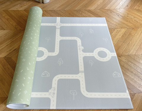 Ce produit est extrait d'une liste de naissance déposée sur Kadolog. Kadolog permet de créer des listes de naissance en toute liberté. Il est possible d'ajouter toutes vos envies cadeaux et de recevoir les dons directement sur votre compte. Avec les dons reçus, vous êtes alors libre d'aller acheter vos produits (comme ce 'Tapis de jeu réversible ') où et quand vous le souhaitez.
