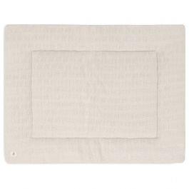 Le Tapis de parc 75 x 95 cm de Jollein est double face, avec un des côtés en tricot et l’autre en fleece.