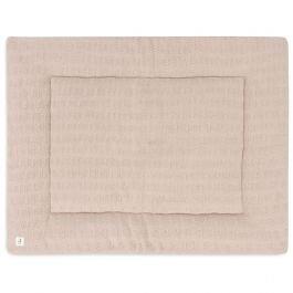 Le Tapis de parc 75 x 95 cm de Jollein est double face, avec un des côtés en tricot et l’autre en fleece.