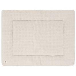 Le Tapis de parc 75 x 95 cm de Jollein est double face, avec un des côtés en tricot et l’autre en fleece.