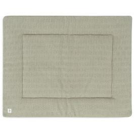 Le Tapis de parc 75 x 95 cm de Jollein est double face, avec un des côtés en tricot et l’autre en fleece.