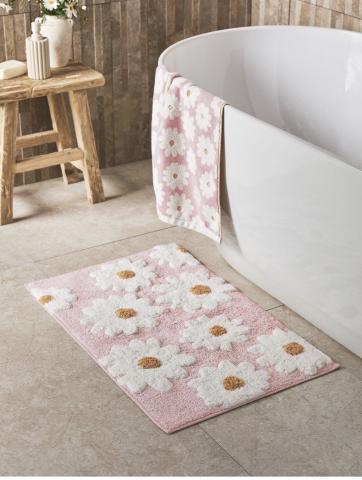 Tapis de sdb rose et marguerites blanches pour le printemps