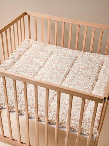 Laissez éclore la douceur dans le petit monde de bébé avec ce tapis de sol en gaze motifs fleuris, une bulle de tendresse où chaque pétale invite à la rêverie. Entre jeux et découvertes, il offre un cocon fleuri plein de confo
