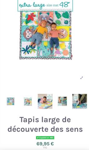 Ce produit est extrait d'une liste de naissance déposée sur Kadolog. Kadolog permet de créer des listes de naissance en toute liberté. Il est possible d'ajouter toutes vos envies cadeaux et de recevoir les dons directement sur votre compte. Avec les dons reçus, vous êtes alors libre d'aller acheter vos produits (comme ce 'Tapis découverte sens chez Happy baby Fleron ') où et quand vous le souhaitez.