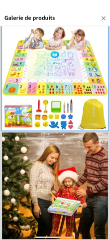 Ce produit est extrait d'une liste de cadeaux (Anniversaire, Noël, ...) déposée sur Kadolog. Kadolog permet de créer des listes de cadeaux (Anniversaire, Noël, ...) en toute liberté. Il est possible d'ajouter toutes vos envies cadeaux et de recevoir les dons directement sur votre compte. Avec les dons reçus, vous êtes alors libre d'aller acheter vos produits (comme ce 'Tapis dessins à eau ') où et quand vous le souhaitez.
