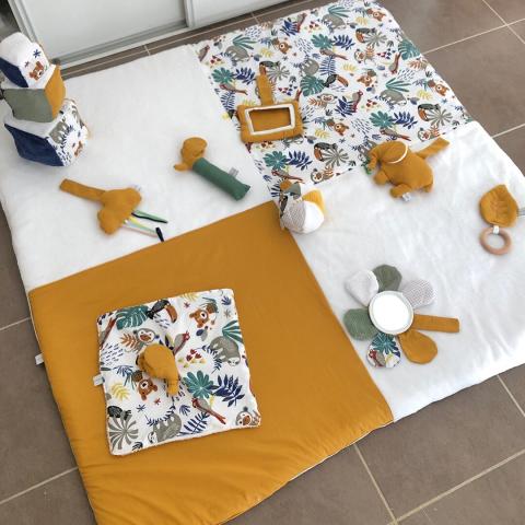 Ce produit est extrait d'une liste de naissance déposée sur Kadolog. Kadolog permet de créer des listes de naissance en toute liberté. Il est possible d'ajouter toutes vos envies cadeaux et de recevoir les dons directement sur votre compte. Avec les dons reçus, vous êtes alors libre d'aller acheter vos produits (comme ce 'Tapis d'éveil ') où et quand vous le souhaitez.