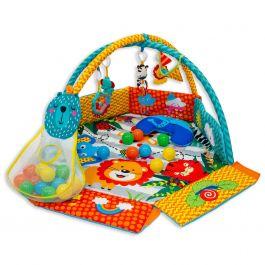 Ce tapis d’éveil à balles de Bo Jungle garantit des heures d'amusement. Les couleurs vives attirent immédiatement l'attention de bébé et les nombreux jouets lui procurent le divertissement nécessaire. Lorsque bébé grandit, le tapis de jeu peut aussi être facilement transformé en une piscine à balles colorée