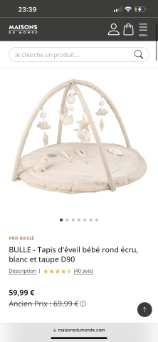 en toute liberté. Il est possible d'ajouter toutes vos envies cadeaux et de recevoir les dons directement sur votre compte. Avec les dons reçus, vous êtes alors libre d'aller acheter vos produits (comme ce 'Tapis d'éveil bébé rond écru, blanc et taupe D90