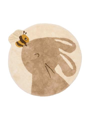Little Dutch Rug Rabbit With Bee, tapis rond de 110 cm en coton biologique antidérapant. Doux et sûr pour une chambre d'enfant confortable !