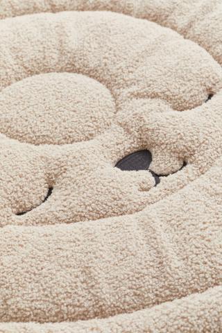 Tapis premier âge légèrement matelassé en tissu peluche doux. Modèle en forme de tête d'ours avec éléments de visage brodés sur le dessus. Il permet à bébé de rester confortablement allongé, de rouler, de s'entraîner à s'asseoir et de commencer à ramper à son propre rythme.