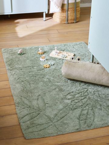 Un tapis aux allures de jungle tropicale pour créer un espace de jeu et de détente pour les enfants.