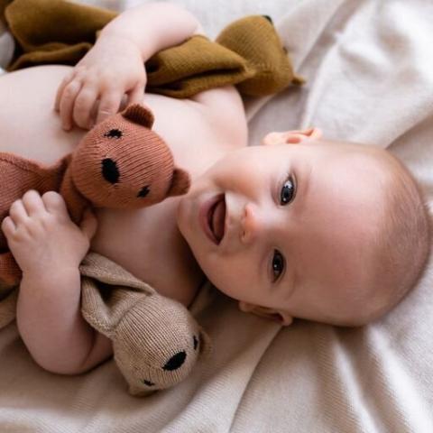 Teddy Tokki van Hvid Knitwear is een zachte teddybeer. Perfect als doudou voor je baby, of als knuffel voor je peuter. De zachte merinowol neemt de geur van je baby op, en zorgt voor een vertrouwd gevoel. Merinowol is ademend en daardoor heel veilig. Elke teddy wordt met de hand afgewerkt in het atelier. Gemaakt uit 100% merinowol, opgevuld met biologische merinowol. Merinowol jeukt niet en is antibacterieel en daarom ook perfect geschikt voor kinderen met eczeem of gevoelige huid. formaat: 35 cm lang- 28 cm breed. Hvid wordt gemaakt in België materiaal: buitenkant: 100% merinowol+vulling: 100% bio-merinowol wassen: Het is niet nodig om merinowol wol vaak te wassen. Het heeft de eigenschap dat het zichzelf reinigt (door de lanoline die het bevat) Het is voldoende om het product buiten te laten verluchten. Indien je toch wast met water: handwas met lauw water (30°) Machinewas enkel op speciaal wolprogramma: 30°, laag toerental Gebruik een wolwasmiddel.