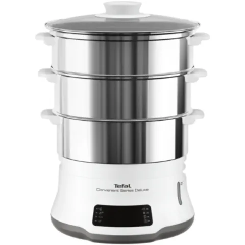 Commande le TEFAL Cuiseur vapeur Convenient Serie Deluxe (VC502D10) Cuiseur vapeur Blanc / Inox à MediaMarkt. En ligne ou dans