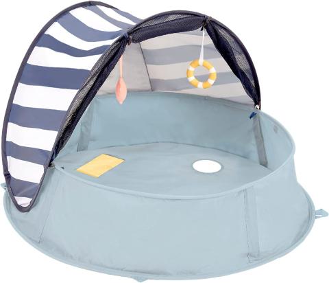 Babymoov Aquani Marinière, 3 en 1 Aire de Jeux, Lit d'appoint et Piscine, Anti-UV FPS 50+, Moustiquaire et Auvent rabattable intégrés